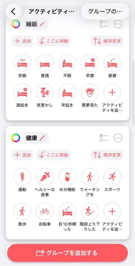 一番いいなあと思ったのが、自分がやった行動を記録できる「アクティビティ」の項目があるところ。